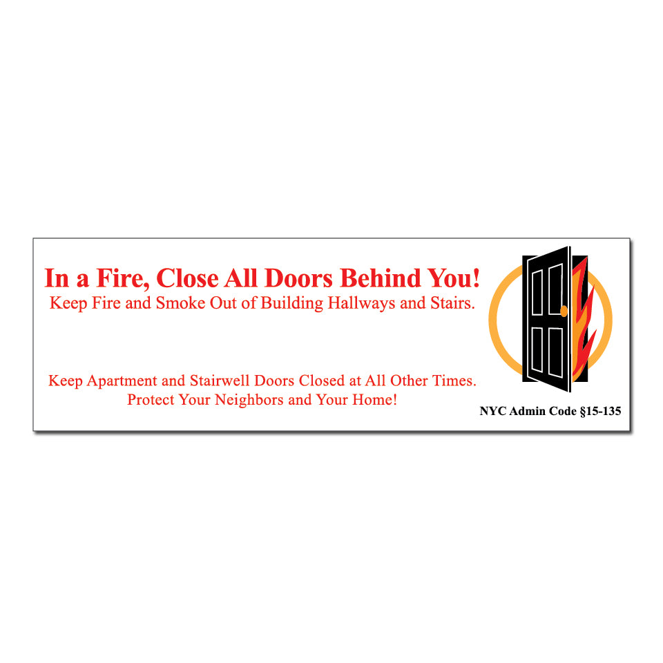 In a Fire, Close All Doors Behind You Sign |HPD Required Signs NYC | Sign Guys NYC